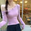 Podzimní Sexy Svetr s Dlouhým Rukávem a Asymetrickým Límcem pro Ženy Zimní Móda Slim Fit Svetry s Odkrytými Rameny Dámské Jednobarevné Šik Krátké Svetry 25502