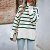Striped Sweater Women Knitted Pullovers Autumn Winter Fashion Zipper Jumpers Long Sleeve Half High Collar Loose Pullover