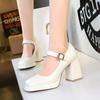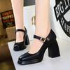 Thick Heel, Square Heel, High Heel, Waterproof Platform, Square Toe, Shallow Mouth, Belt Buckle, Straight Strap, Single Shoe for Women