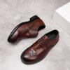 Dress Business Casual Leather Shoes Big Head Shoes Men'S Leather Retro Washed Engraved Goodyear British Wedding Shoes
