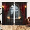 2 ks, Červené Závěsy Noc Gotický Hrad Tunýlek Digitálně Tištěné Závěsy, Polyesterový Materiál, Vhodné pro Obývací Pokoj, Kuchyň