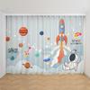2ks Levný Kreslený Vesmírný Astronaut Vtipný Závěs, Kluci Děti Raketa Planeta Tenké Stínící Závěsy do Ložnice Obývacího Pokoje Vlastní