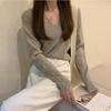 American Autumn and Winter Korean Version Loose V-neck Design Sense Pullover Long Sleeved Knitted Sweater Women's Clothing