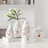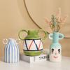 Keramická ručně malovaná váza na květiny Stolní středový prvek Ornament Domácí dekorace Kreslená váza s obličejem s dvojitým uchem