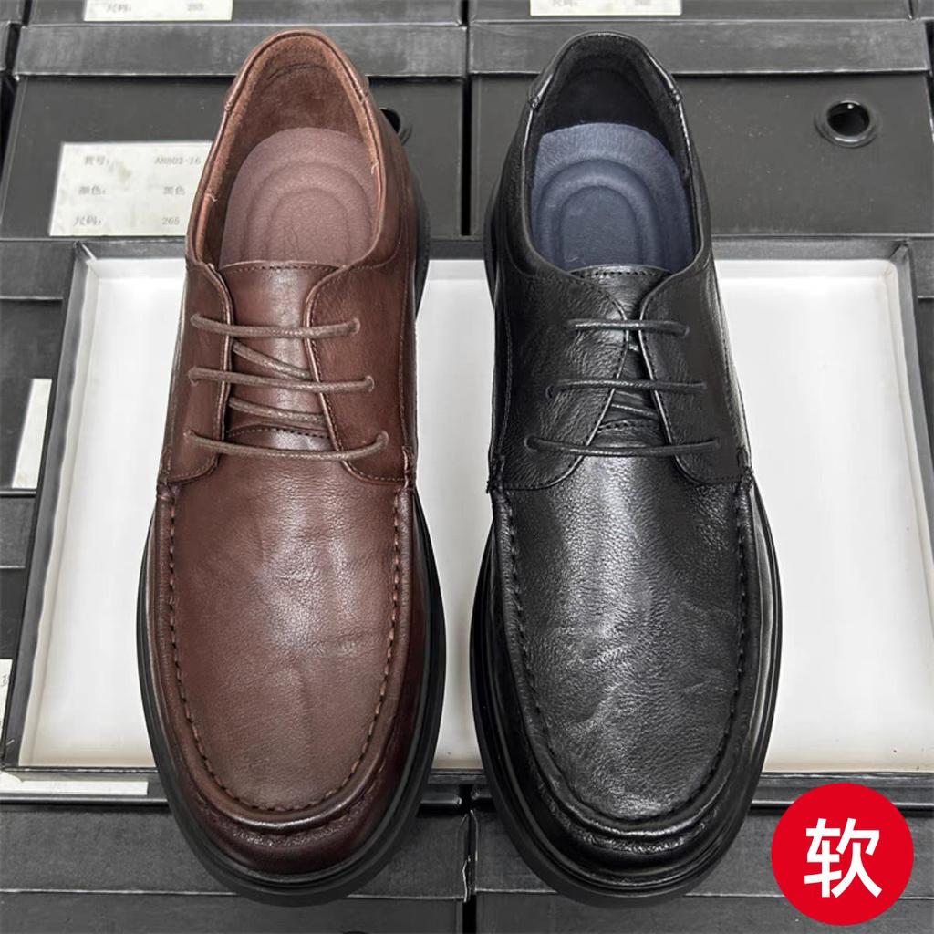 Round Head Leather Shoes Men'S Business Dress Leather Breathable Commuter Work Shoes Soft Sole Soft Surface Flat Heel Casual Men'S Leather Shoes