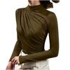 Autumn and Winter Slim Pullover Half High Neck Velvet Pleated Long Sleeve Top