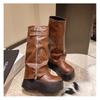 Podzim Zima Robustní Dámské Rytířské Vysoké Boty Módní Platforma Plochá Dlouhé Kotníkové Boty Dámské Westernové Kovbojské Boty