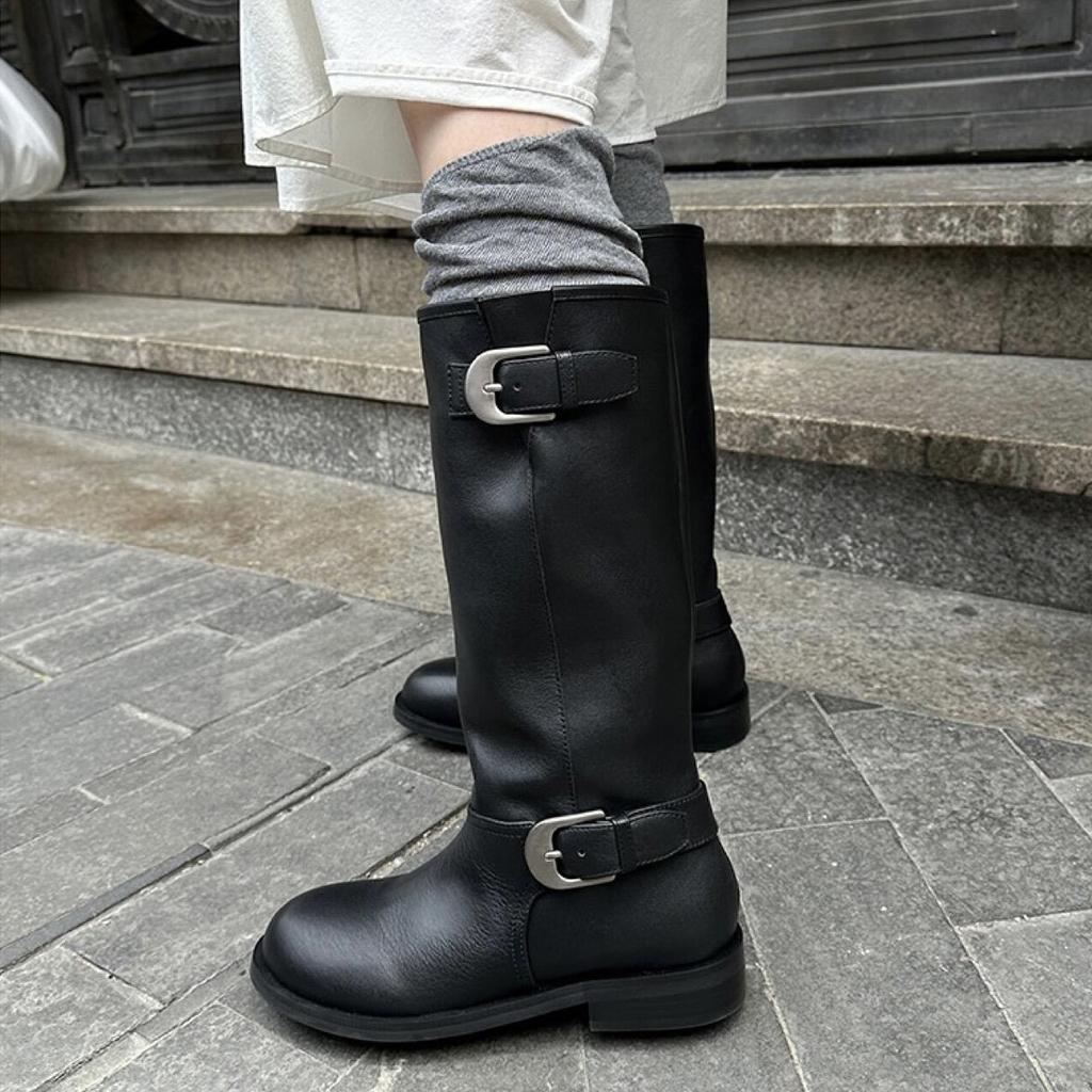 All Cowhide~ Wide Tube Leather Thick-Soled Knight Boots Women'S Winter Fat Mm Big Tube Circumference Long Boots Long Boots High Western Boots