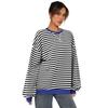Dámská mikina s kulatým výstřihem a pruhy, volný top s lucernovými rukávy