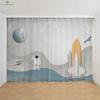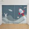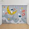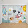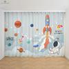 Kreslené závěsy s potiskem astronauta a vesmírné lodi, Zatemňovací, Tepelná ochrana, Ložnice, Obývací pokoj, Pracovna, 2 ks