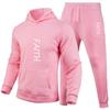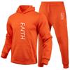 Letters Printed Sets Autumn Winter Tracksuit Men Solid Hooded 2 Piece Sets Mens Outfits Suit Men Fleece Sport Hoodie Sweatpants Two Piece Sets