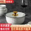 Severní Evropa Domácí keramika Dvouuchá mísa se skleněným víkem Křišťálová rukojeť Bílá Velká mísa Polévkový talíř Dekorativní nádobí
