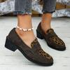 Women Pumps Spring and Autumn Fashion Loafers Large Size Casual Medium Heel Leopard Print Color Slip-On High Heels Shoes Women