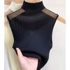 Dámské jednobarevné úzké pletené tílko bez rukávů Šik polovyvýšený síťovaný malý top Sexy dutý tílko