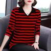 YYFS Dámská móda Ležérní Jaro Podzim Blůzy a košile s proužkovaným potiskem s dlouhým rukávem POLO s výstřihem