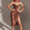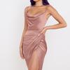 Módní sexy dělené saténové šaty Slim Temperament Sexy slingové dělené šaty