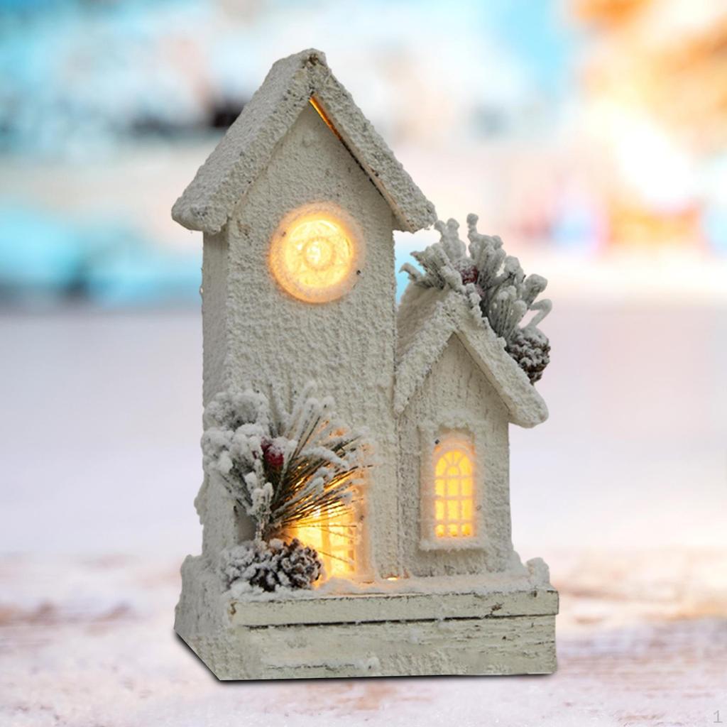 Vánoční osvětlená zimní dřevěná chýše Miniatura 14x10x26cm Vánoční ozdoba na plochu na chodbu