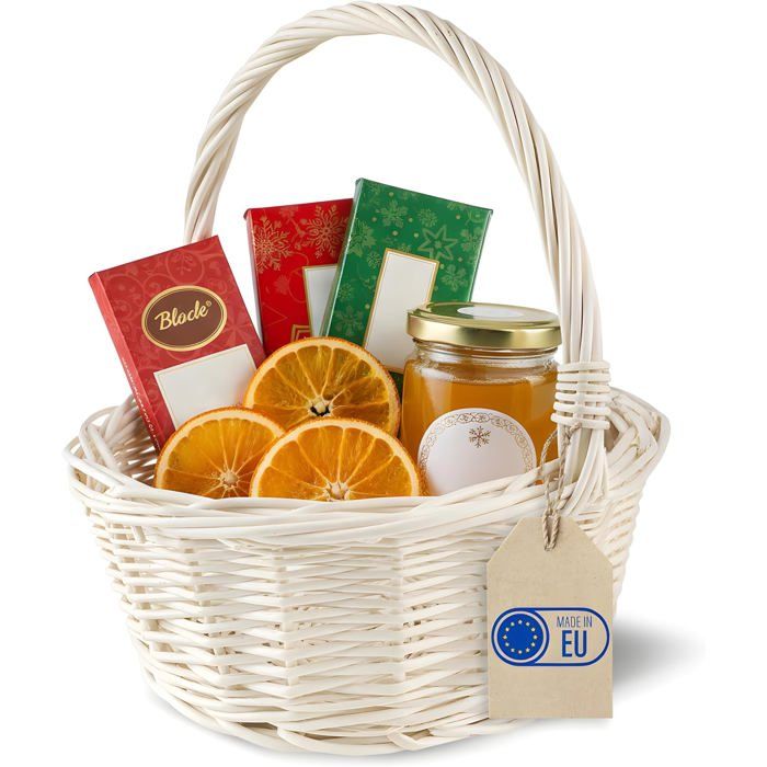 Creative Home Petit Panier de Pâques en Osier Blanc | 22 x 22 x 26 cm (+-- 2 cm) | Tissé à la main | Panier fruits
