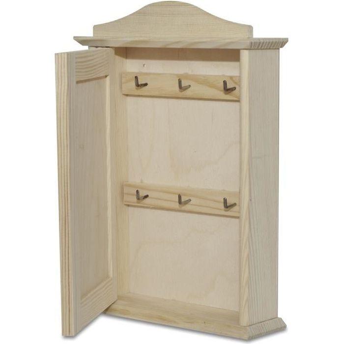 Boîte à Clef Murale - CREATIVE DECO - 6 Crochets - Bois Naturelle