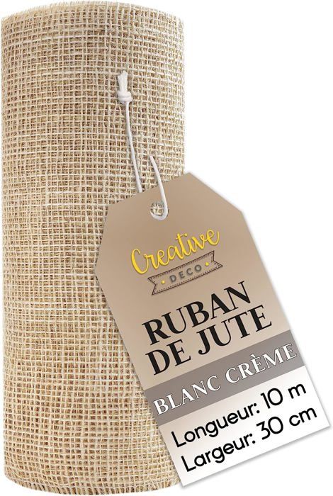 Ruban Chemin de Table Toile de Jute 30cm x 10m Blanc CREATIVE DECO - Décoration Mariage