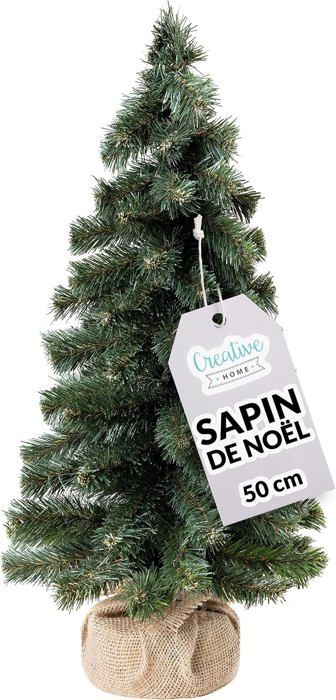 Sapin de Noël artificiel - CREHOM - Mini sapin - 50 cm - Vert foncé - Support en jute