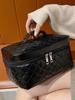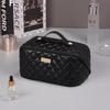 Černá kostkovaná čtvercová kosmetická taška Velká kapacita Textura měkké kůže Úložná taška Dámská Nová móda Jednoduchý styl Jednobarevná kabelka