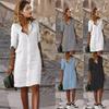 Dámské letní retro jednobarevné bavlněné prádlo, výstřih do V, 3/4 rukáv, lehké prodyšné šaty