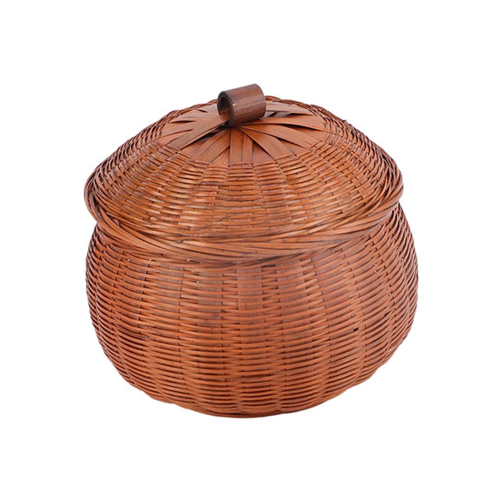 Round Rattan Storage Box Sundries Basket Storage Basket Food Serving Tray Durable for Cafe Stores Restaurant Kitchen Snacks