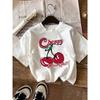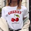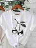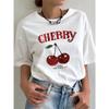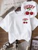 2024 New Women's White Round Neck Short Sleeve T-Shirt, Casual Cherry Printed T-Shirt, Suitable for Summer Unisex