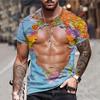 Ležérní topy s kulatým výstřihem a krátkým rukávem nadměrné velikosti rychleschnoucí oblečení pánská móda vtipné svalnaté pánské tričko 3D potisk
