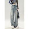 Vintage Ripped Jeans Women's Straight-leg Pants with A Wide Leg Mop