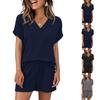 Dámské dvoudílné jednobarevné šortky s krátkým rukávem ležérní šortky, plážové outfity s výstřihem do V