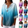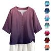 Women's Fashion Doll Collar Seven Sleeve Loose Gradient Shirt Casual Button Patchwork Top