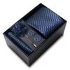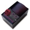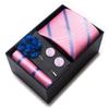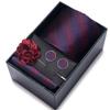 The set includes tie, square scarf, cufflinks, black gift box, and corsage.