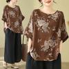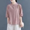 Bavlna Len a Len Halenka Dámská Ramie Nadměrná velikost Matka Jaro a Léto Nový Čínský styl Dámská Halenka s krátkým rukávem na knoflíky