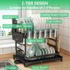 2 Tier Dish Drying Rack Drain Board Set Tableware Drainer Kitchen Countertop Storage Space Saving Organizer for Countertop