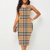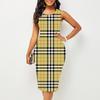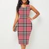 Dámské šaty Sling Léto Barevný Velký čtvercový potisk Šaty Upnuté Bez rukávů Slim Fit Sexy Móda Top Oblečení