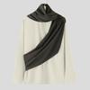 INCERUN Men Cowl Neck Long Sleeve Front Cross Shirts Casual Patchwork Tops