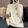 Dámský svetr s kulatým výstřihem Mamčin podzimní a zimní volný pletený svetr s barevnými bloky Top s dlouhým rukávem