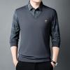 Pánská ležérní pletená košile s dlouhým rukávem a fleecovou podšívkou, vyšívaná kostka, vzhled vrstvení, klopový límec, mírně pružná tkanina na podzim/zimu