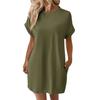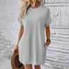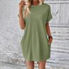 Dámské módní jednobarevné kulaté výstřihové kapsy volné krátké rukávy šaty