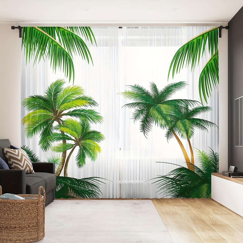 2ks Poloprůhledný Dekorační Závěs Zelené Eukalyptové Listy Zelené Rostliny Jaro Polyesterová Vlákna Kapsa na Tyč Závěs Do LožniceR