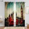 Černobílé Závěsy s 3D Tiskem Městské Budovy Pohled na Ulici Červený Autobus Žluté Auto Jednoduché Moderní Dekorativní Závěsy 2KS