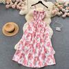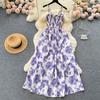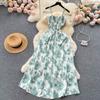 YYFS Dámská móda Léto Jaro Květinový potisk Podvazky bez rukávů Ležérní šaty s vysokým pasem