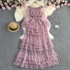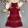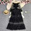 YYFS Dámská móda Jaro Podzim Jednobarevný potisk Neformální šaty s dlouhým rukávem na jedno rameno s vysokým pasem