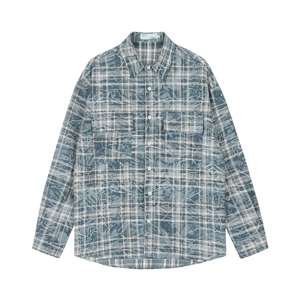 Pánská univerzální pouliční móda Kostkovaná s dlouhým rukávem Trendy značkový designový cit, Streetová bunda košile pro pár na čtyři roční období