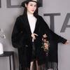 Mink Fleece Cape Shawl Zimní třásňový dvouúčelový vyšívaný Cape Cardigan Tlustý svetr s dlouhým rukávem vhodný k pokožce