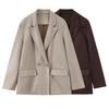 Dámské kabáty Jednobarevný hnědý Límec s klopami Dlouhý rukáv Kapsy 2 knoflíky Saka Podzim Dámské oblečení Vintage