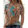 Jarní a letní módní tričko s 3D grafikou zvířete leoparda s kulatým výstřihem