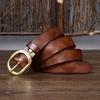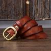 Retro Pleated Trendy Copper Buckle Belt Women'S Genuine Leather First Layer Pure Cowhide Versatile Jeans Belt